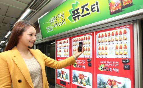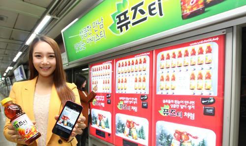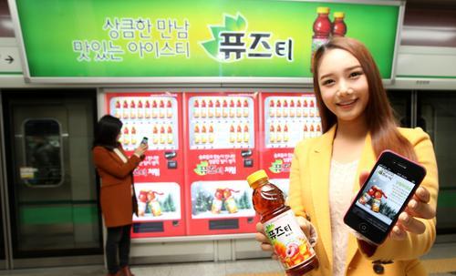 자판기를 연상시키는 대형 옥외 광고물은 코엑스몰 광장을 비롯해 신촌, 이대, 홍대 입구, 압구정, 시청, 광화문, 동대문 등 서울 시내 13군데 지하철역 스크린 도어에 설치되며 제품은 퓨즈 티 복숭아 500ml 페트로 증정된다.