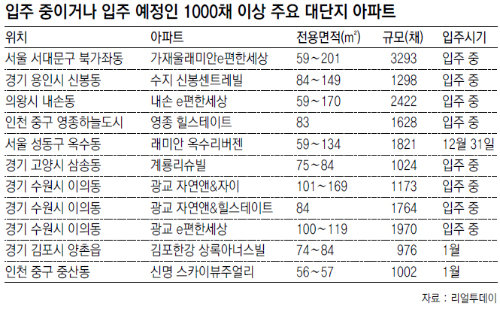 양지영 리얼투데이 리서치 팀장은 “만성적인 전세물량 부족에다 부동산 침체로 아파트 시공도 많지 않은 만큼 내년 초 전월세 재계약을 앞둔 세입자들은 한꺼번에 많은 물량이 공급되는 대단지 아파트 입주를 고려하는 것이 좋다”고 조언했다.