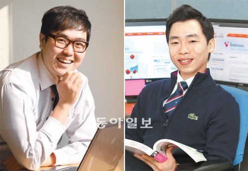 동아일보 경제섹션의 청년드림센터 지면에 소개한 ‘체험! 파워기업’ 코너를 통해 유망 중소, 중견기업을 탐방했던 취업지원자 중 2명이 2013년 계사년을 앞두고 일자리를 구했다. 스마트카드 운영체제 및 솔루션 전문회사인 코나아이에 입사한 선승균 씨(왼쪽)와 데이터 분석회사인 데이터스트림즈에 입사한 박태현 씨가 환하게 웃고 있다. 김미옥 기자 salt@donga.com