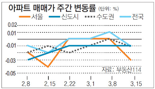 전세시장은 서울(0.04%), 신도시(0.02%), 수도권(0.01%) 모두 꾸준한 상승세를 이어갔다. 다만 새 학기가 시작돼 학군 수요가 잠잠해지면서 서초(―0.05%), 양천(―0.01%) 등의 전세금은 소폭 떨어졌다.