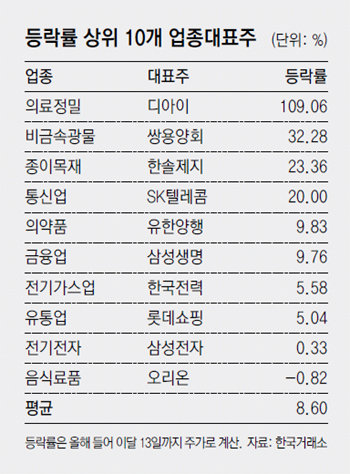 시장 평균보다 8.47%P 더 상승… 의료정밀 ‘디아이’ 109% 최고