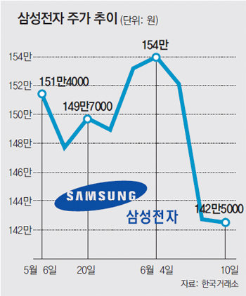 10일 삼성전자 주가는 전날보다 2000원(0.14%) 떨어진 142만5000원에 장을 마쳤다. 삼성전자는 전 거래일(7일)에도 6.18%가량 폭락한 바 있다. 외국인이 대량 매도에 나섰기 때문이다. JP모건이 실적 둔화를 예상했을 뿐만 아니라 국제 신용평가사 피치도 삼성전자의 혁신 부족을 지적하며 신용등급 상향 조정 가능성이 적다고 언급한 바 있다.