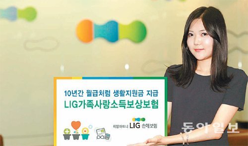 LIG손해보험은 최근 피보험자가 사망하거나 커다란 장애를 입으면 이후 10년간 생활지원금을 주는 ‘LIG가족사랑소득보상보험’을 출시했다. 소득보상보험이란 피보험자가 갑작스레 사망하거나 후유장애로 인해 소득을 상실할 경우에 대비하는 상품이다. 주로 가족의 생계를 책임지는 가장들이 가입한다.