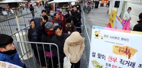 설 앞두고 열린 한우 직거래장터 “줄을 서시오”