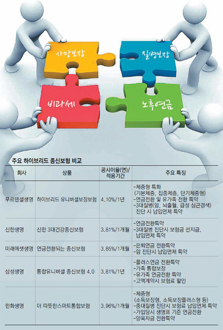 종신에 질병보장 노후연금 등 가미, 하이브리드형 보험 잇달아 출시