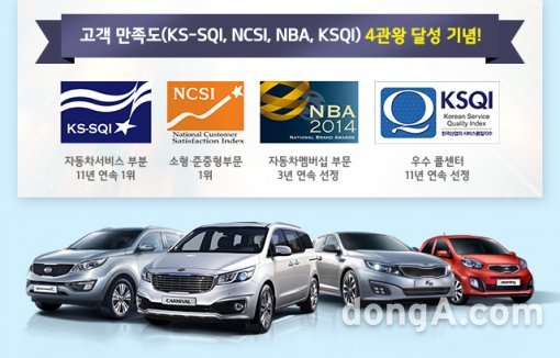 기아차는 올해 6월까지 ‘한국서비스품질지수(KS-SQI) 자동차서비스 부문 11년 연속 1위’, ‘국가고객만족도지수(NCSI) 소형·준중형 부문 1위’, ‘국가브랜드대상(NBA) 자동차멤버십부문 3년 연속 선정’, ‘한국산업서비스품질지수(KSQI) 우수 콜 센터 11년 연속 선정’으로 고객 서비스와 관련해 큰 성과를 인정받았다.