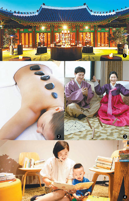 호텔 내에서 공연을 열거나 추석 명절용으로 별도 부대시설을 마련한 곳들도 있다. 서울웨스틴조선호텔은 고객이 자녀와 함께 이용할 수 있는 ‘보름달 도서관’을 열고 관련 상품인 ‘가을 밤, 만월 패키지’(23만 원부터)를 내놓았다. 2층 연회장을 도서로 가득 채워 명절 기간만 특별히 도서관으로 운영한다. 메이필드 호텔은 국악 공연과 달 관측, 민속놀이 체험이 포함된 ‘도란도란 패키지’(20만 원)를 마련했다. 온 가족이 제기차기 투호놀이 널뛰기 등을 체험할 수 있는 장소를 마련했고, 밤에는 달을 관측할 수 있는 망원경을 대여해 준다. 추석 당일에는 잔디정원에서 퓨전 국악공연을 열 예정이다.