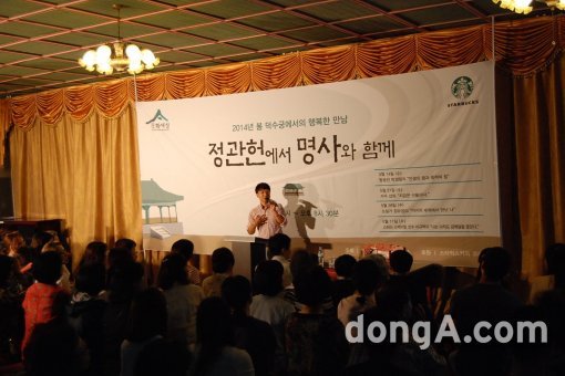덕수궁(소장 박정상)의 대표적인 고궁 야간문화행사인 ‘정관헌에서 명사와 함께’가 스타벅스커피코리아(대표 이석구) 후원으로 열린다. 이번 행사는 오는 17일과 10월 1일, 10월 8일까지 매주 수요일(9월 24일 제외) 오후 7시부터 8시30분까지 덕수궁 정관헌에서 진행된다.