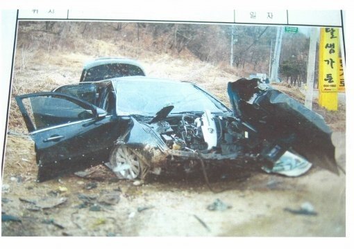 포천경찰서에 따르면 당시 운전자 A씨의 오피러스는 경기도 포천의 편도 1차선 도로를 달리 던 중 우측으로 굽은 내리막길에서 중앙선을 넘어 반대편 자동차검사소 입구로 돌진했다. 검사소 주변에 주차된 쏘나타의 왼쪽 뒷문과 범퍼를 추돌하고 콘크리트 벽에 부딪힌 뒤 약 40m 정도 날아가서야 정지했다. 사고로 A씨는 인지장애를 얻었고, 동승자 두 명중 한명은 숨을 거뒀다.