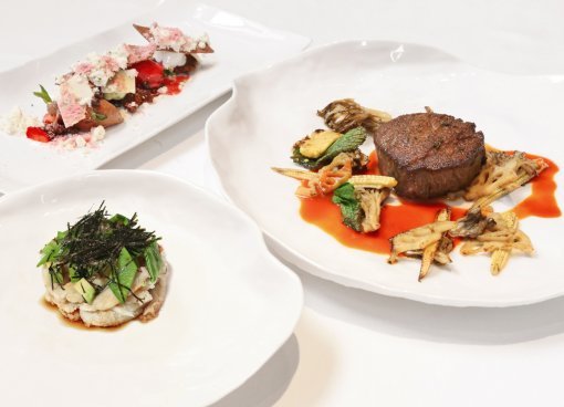정찬 코스인 시그니처 레시피는 신선하고 생기 넘치는 식감의 ▲게살 샐러드, 한국적인 요소가 자연스럽게 녹아 들어간 ▲고추장 버터 스테이크, 기아의 색상인 붉은색을 선명하게 보여주는 ▲베리&화이트 초콜렛 무스로 이뤄진다.