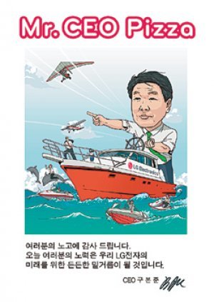 18일 LG전자에 따르면 구본준 부회장이 임직원과의 스킨십을 강화하기 위해 전달한 ‘Mr. CEO 피자’가 2만 판(5만5000인분)을 돌파한 것으로 집계됐다. 이 이벤트는 구 부회장이 2011년 4월 스마트폰 개발팀 300여 명에게 감사 메시지를 담은 피자 80판을 보내면서 시작됐다.