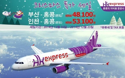 홍콩 저비용항공사(LCC) 홍콩익스프레스가 크리스마스를 맞아 특가 세일 프로모션을 진행한다.