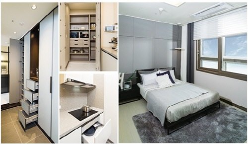 84m²A형(515실)은 방 3개와 거실을 아파트 앞면에 배치한 ‘4베이’로 지어 오피스텔이지만 채광과 통풍이 좋을것으로 보인다. 주방은 주부들이 쓰기 편하도록 조리대, 가스레인지, 냉장고 등을 ‘ㄷ’자 형태로 배치한다.
