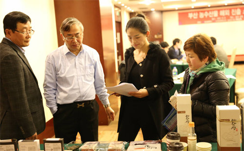 지난해 12월 중국 상하이에서 진행된 ‘부산 농수산물 해외 진출 상담회’에서 농수산물 업체 관계자(오른쪽에서 두번째)가 중국 바이어와 수출 상담을 진행하고 있다. 부산창조경제혁신센터 제공