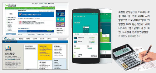 매년 해야 되지만 매번 어려운 연말정산. 올해도 카드 공제율 등 여러 가지 제도 변화가 있기 때문에 무턱대고 하다가는 남들이 ‘13월의 월급’을 챙기는 동안 ‘13월의 세금폭탄’을 맞을 수 있다. 이 때문에 정부기관인 국세청뿐만 아니라 민간 기관 및 업체들도 연말정산에 도움을 주는 다양한 서비스를 선보이고 있다.