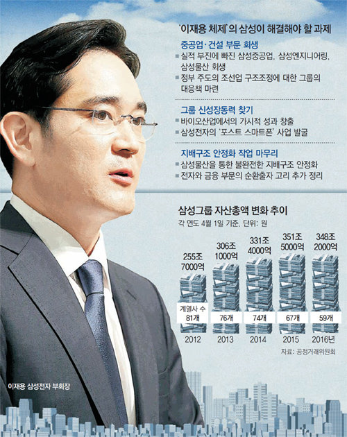 지난해 직원 수를 2400여 명이나 줄인 삼성전자의 부활이라는 과제도 있다. 3월 출시된 스마트폰 갤럭시 S7이 순항하고 있지만 세계 스마트폰 시장은 이미 정체기에 접어들었다. 반도체, 휴대전화, 디스플레이를 차례로 발굴해 삼성을 글로벌 기업으로 키워낸 아버지처럼 이 부회장에게도 ‘포스트 스마트폰’ 사업이 절실하다.