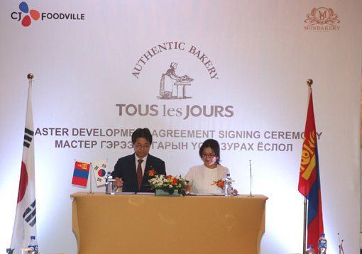 CJ푸드빌이 운영하는 베이커리 뚜레쥬르가 몽골 현지 기업과 마스터프랜차이즈(이하 MF) 협약을 맺었다. 국내 베이커리 브랜드가 몽골에 진출하는 것은 이번이 처음이다. 이에 따라 뚜레쥬르는 진출국 1개를 추가하며, 해외 총 8개국에서 국내 대표 베이커리로서의 위상을 알리게 됐다. 1인당 GDP가 약 4000 달러인 몽골은 2020년에는 GDP 2만 달러에 육박할 것으로 예측되고 있다. 최근 10년간 평균 경제 성장률이 8%에 달하는 등 고성장 국가에 속한다. 뚜레쥬르는 현재 중국, 미국, 인도네시아, 베트남 등 몽골을 포함해 국내 베이커리 업체 중에서는 최다국인 8개국에 진출했으며, 총 220여개 매장을 운영 중이다.