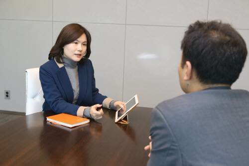 이명열 한화생명 FA지원팀 투자전문가(왼쪽)가 고객에게 마이너스 금리 시대를 현명하게 준비하는 방법을 조언하고 있다. 한화생명 제공