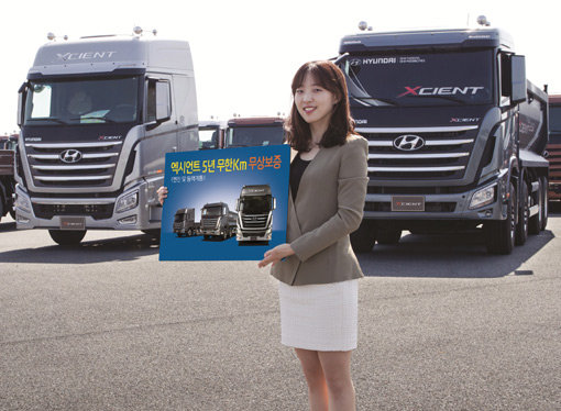 현대자동차가 업계 최초로 상용 대형트럭 엑시언트의 엔진·동력 계통 5년 무한 보증 서비스(사진)를 실시한다고 밝혔다.