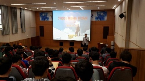 취업특강을 강의하는 인키움대표 문성식강사는 본인이 25년간 겪어왔던 직장생활과 연구해 온 자료들을 바탕으로 취업트렌드, 기업이 원하는 인재상, 기업탐색, 미래를 위한 준비 등에 대해 강의했다.