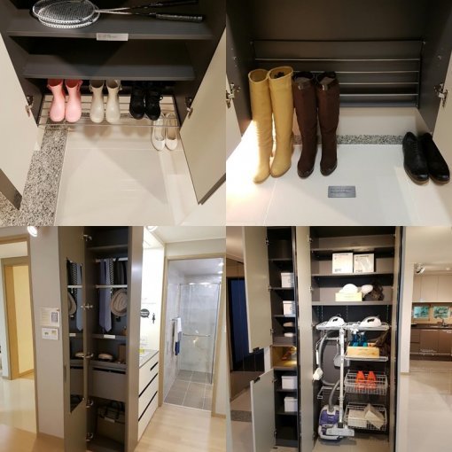 듀얼파우더와 하이드앤씩수납장은 84타입에 적용되고 워킹케어 신발장은 전 세대 설계된다.