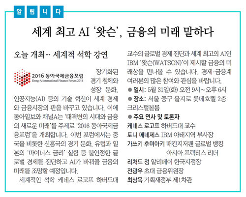 [알립니다]세계 최고 AI ‘왓슨’, 금융의 미래 말하다