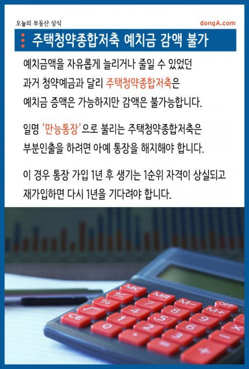 [오늘의 부동산 상식]주택청약종합저축 예치금 감액 불가