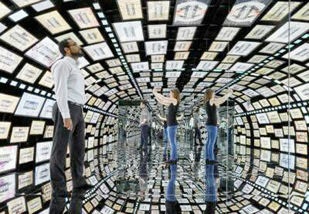 터널 안으로 들어가자 천장과 바닥, 전후좌우 벽면이 글자와 사진들로 가득 찼다. 300여 개 스크린으로 이뤄진 터널의 이름은 ‘소셜 갤럭시(Social Galaxy)’. 방문객이 입구에서 인스타그램 계정에 로그인하면 그간 올린 사진들과 게시물, 태그와 댓글이 비디오아트로 재구성됐다.