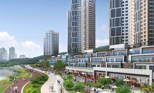 상가를 단지 내 이곳저곳에 분산 배치하는 대신 호수 주변에 지은 건물을 스트리트형 테라스 상가동으로 구성해 소비자가 다른 상가로 쉽게 이동하지 않도록 지을 예정이다.