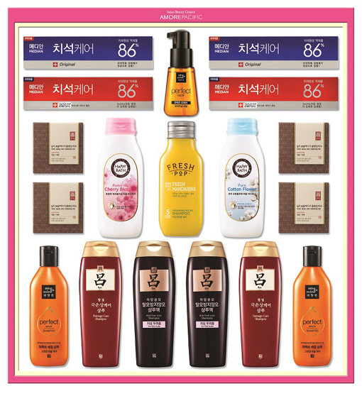 아모레퍼시픽의 스페셜 ‘브랜드 선물세트’는 고농축 한방성분으로 건강하고 풍성한 머릿결 관리에 도움을 주는 ‘려(呂) 선물세트’ 6종, 천연 유래 성분과 자연의 풍부한 향을 담아 상쾌한 내추럴 바디케어를 제공하는 ‘해피바스 선물세트’ 1종과 슈퍼푸드 성분의 에너지로 헤어에 생기를 선사하는 ‘프레시팝 선물세트’ 1종으로 구성되어 있다.