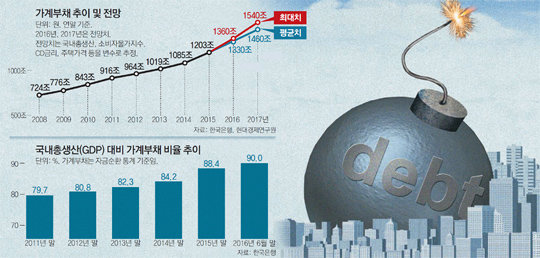 연말 미국의 금리 인상이 확실시되는 가운데 내년 대선 정국에서 부채 관리가 소홀해지면 눈덩이처럼 불어난 가계 빚이 한국 경제에 치명적 뇌관이 될 수 있다는 지적이 나온다.