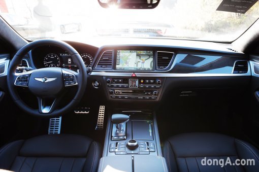 실내 역시 G80과 달리 스포티한 감성을 위한 요소들로 채워졌다. 운전대는 3스포크 타입으로 변경되고 림의 폭과 직경을 조절해 손에 잡히는 질감을 높였다. 운전대 넘어 패들시프트의 길이는 기존보다 늘려 조작성을 높이고, 허리 지지부를 증대시킨 스포츠 시트의 적용으로 착좌감 또한 우수하다.