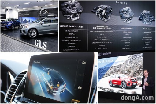 시승차는 GLE 350d 4메틱 쿠페와 GLS 350d 4메틱으로 모두 3.0리터 6기통 디젤 엔진과 새롭게 적용된 자동 9단 변속기가 맞물렸다. 이들 모두 최고출력 258마력, 최대토크 63.2kg.m을 발휘하고 복합연비는 GLE 쿠페가 10.1km/ℓ, 차체가 조금 더 긴 GLS는 9.5km/ℓ로 정부인증을 마쳤다.