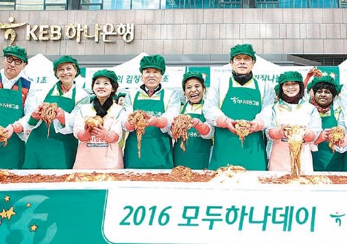 이는 매년 ‘1(하나)’이 겹쳐지는 11월 11일부터 다음 해 1월 11일까지 두 달 동안 2만3000여 명의 임직원들이 봉사와 나눔을 실천하는 하나금융그룹의 사회공헌 캠페인이다. 2011년부터 6년째 이어오고 있다. 올해에는 롯데제과 임직원이 동참했다. 소외계층에 전달할 1만1111포기의 김장을 함께 담갔다.