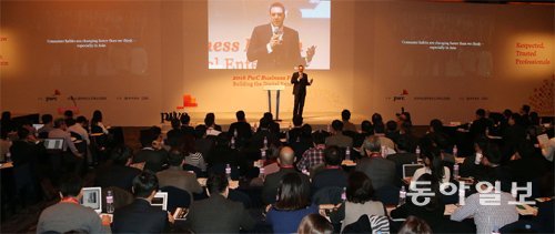 콜린 라이트 PwC 아시아태평양 디지털서비스 리더는 30일 서울 중구 을지로 롯데호텔에서 글로벌 컨설팅사인 PwC컨설팅이 주최하고 본보가 후원한 ‘PwC 비즈니스 포럼’ 기조강연에서 이같이 말했다. ‘기업 디지털화(Building the Digital Enterprise)’를 주제로 열린 이날 포럼에는 당초 예상보다 두 배나 많은 1000여 명의 비즈니스 리더가 몰려들었다. 그래서 행사장을 추가로 개방해 동영상으로 강연 내용을 생중계해야 했을 만큼 열기가 뜨거웠다.