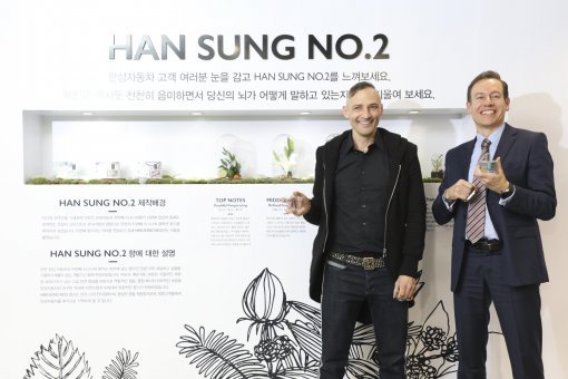 한편 한성차 시그니쳐 퍼퓸 ‘HAN SUNG No.2’는 지난해 30주년을 기념해 출시한 인테리어 퍼퓸에 이은 두 번째 제품으로 30여 가지의 천연 향료를 바탕으로 젊음, 세련미, 정통성 등의 가치를 한성자동차만의 향으로 표현했다. 총 6개월이 넘는 개발 기간 끝에 완성된 이번 퍼퓸은 직접 몸에 뿌릴 수 있는 제품으로 개발되어 전국 한성자동차 매장에서 차량을 구매하는 고객에게 선물로 증정될 예정이다.