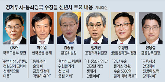 정유년(丁酉年) 새해를 맞은 경제 부처와 통화 당국 수장은 신년사에서 위기관리의 중요성과 위기 극복의 의지를 강조했다.