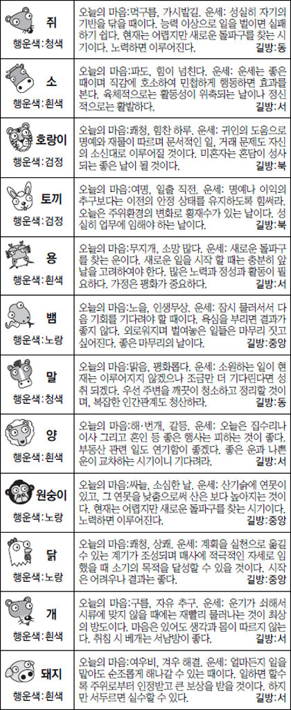 [스포츠동아 오늘의 운세] 2017년 1월 2일 월요일 (음력 12월 5일)
