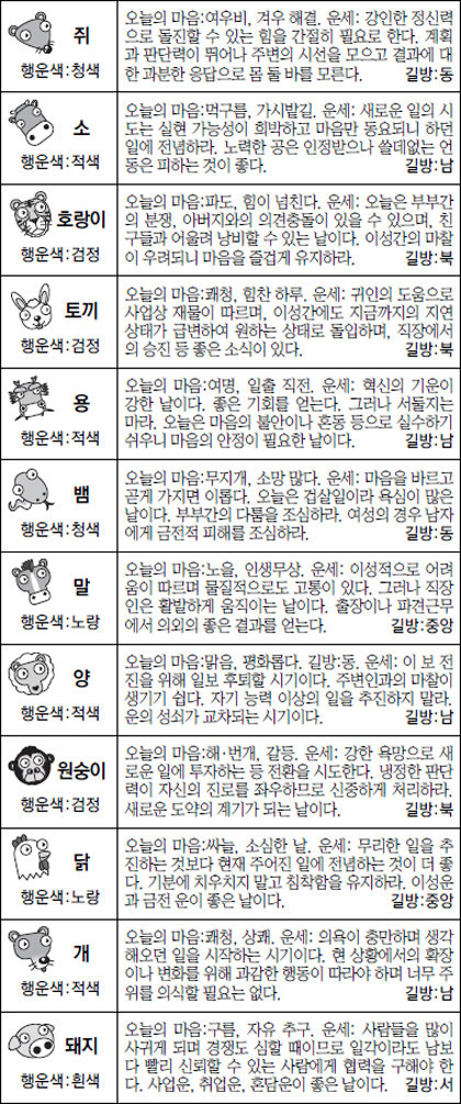 [스포츠동아 오늘의 운세] 2017년 1월 3일 화요일 (음력 12월 6일)
