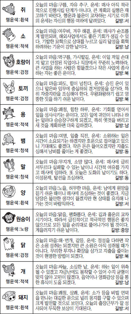 [스포츠동아 오늘의 운세] 2016년 1월 4일 수요일 (12월 7일)