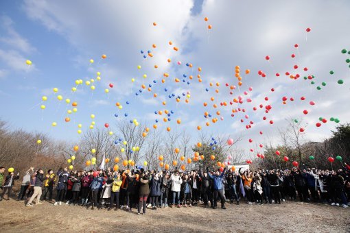 NS홈쇼핑은 최근 서울 청계산에서 도상철 대표이사를 비롯해 TV상품(MD), TV영상(PD·쇼핑호스트), e사업(온라인몰), SB사업(카탈로그), TC사업(T-커머스) 등 임직원 266명이 참석한 가운데, ‘Go Together 2017, 판매목표달성 등반대회’를 개최했다. NS홈쇼핑 임직원들이 2017년 목표달성을 기원하며 오색 풍선을 하늘로 날리고 있다.