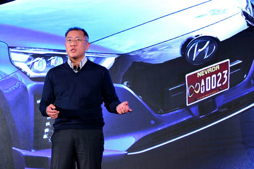 정의선 현대자동차 부회장이 4일(현지시간) 미국 라스베이거스에서 열린 ‘CES 2017’에서 미래 모빌리티 구현을 위한 3대 방향성을 제시했다. 사진제공|현대자동차