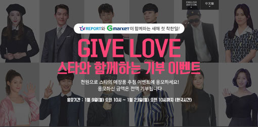 한류스타 32인이 전 세계 팬들과 함께 기부로 새해맞이에 나섰다.G마켓 글로벌샵은 23일까지 김수현·박해진·설현·송혜교·엑소·티아라 등 32인의 한류스타와 함께하는 기부 이벤트 ‘기브러브’를 연다. 스타들이 내놓은 애장품을 원하는 전 세계 고객을 대상으로 응모를 받고, 추첨을 통해 전달 고객이 확정되는 프로젝트다. 수익금 전액은 스타의 이름으로 ‘세이브더칠드런’에 기부된다. 애장품도 다채롭다. 박해진은 ‘치즈 인 더 트랩’에서 입었던 셔츠와 사인을, 송혜교는 ‘태양의 후예’에서 착용했던 원피스와 사인을 준비했다. 엑소 첸은 나이키 운동화와 사인, 티아라 효민은 선글라스와 사인CD 등을 내놨다. 스타 애장품 응모권(1000원)을 구매하면 자동 참여되며, 스타별로 중복 및 반복 응모가 가능해 많이 구매할수록 당첨확률이 높다. 당첨자는 25일 오후 2시 글로벌샵 사이트에 공지한다.