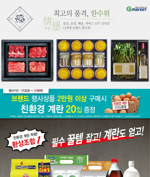 G마켓이 내놓은 한우 등심과 채끝 각 400g, 국내산 돼지고기 삼겹살과 목살을 각각 400g씩 혼합한 ‘한우 한돈세트(9만7000원)’와 불고기500g과 국거리500g에 더덕400g을 혼합해 내놓은 ‘한우더덕 혼합세트 1호’(7만4900원)가 대표적이다. 또 ‘한라봉 견과세트’(3만9900원)는 제주 한라봉 8개와 호두·아몬드 등 총 4가지의 견과를 혼합했고, ‘예산 사과 배 수제잼 세트’(2만9900원)는 사과와 배 각각 5개씩과 수제잼 2개를 섞었다.