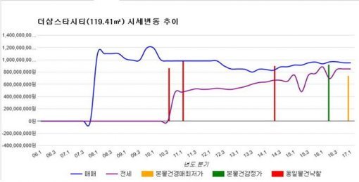같은 날 서울 광진구 자양동 더샵스타시티 전용면적 119.41㎡도 주목할 만하다. 더샵스타시티 주상복합은 2007년 3월 입주한 최고 58층, 총 4개동 1177세대 규모다. 지하철 2·7호선 환승역인 건대입구역이 도보 5분 거리에 있으며 다양한 노선의 버스가 지나는 정류장도 가깝다. 교육 환경으로는 자양중, 자양고, 동자초, 신양초, 자양초, 건대사대부중, 건대사대부고, 건국대 등이 인근에 있다. 주민전용 통로를 통해 롯데백화점, 이마트 등 대형 쇼핑시설을 이용할 수 있고 대형의료시설, 은행, 영화관, 미용실 등 여러 생활편의시설도 도보권에 자리하고 있다. 최저가 7억4160만 원부터다.