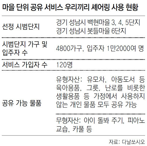 국내 최초의 마을 단위의 공유경제 서비스가 시작된 지 1개월이 지났지만 기대만큼의 호응을 얻지 못하고 있다.