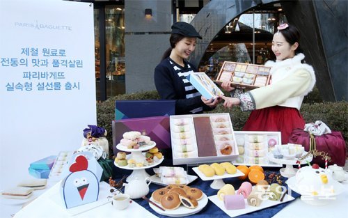 설을 앞두고 파리바게뜨가 16일 오전 서울 종로구 파리바게뜨 종로시그니처점에서 작은 빵과 다과로 구성한 실속형 설 선물을 선보였다.