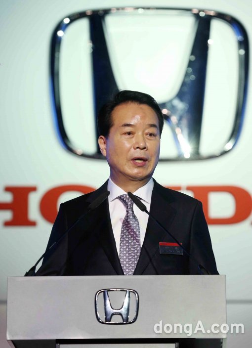 정우영 혼다코리아 대표가 18일 오후 서울 용산구 그랜드 하얏트 호텔에서 열린 '어코드 하이브리드' 국내 공식 출시 행사에서 신차 발표를 하고 있다.