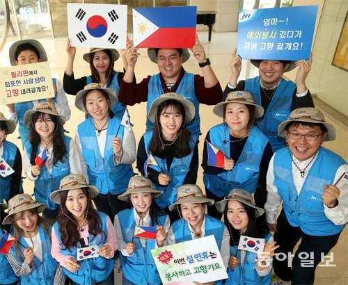 중견 제약사인 JW그룹 임직원들로 구성된 필리핀 의료봉사단이 19일 서울 서초구 JW그룹 본사 사옥에서 발대식을 연 뒤 기념촬영을 하고 있다. 이들은 27일까지 필리핀 마닐라 발라본에서 봉사활동을 한다.