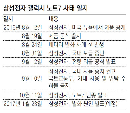 삼성전자가 갤럭시 노트7 발화 원인을 ‘배터리 제조 결함’으로 결론 내린 것으로 알려졌다. 경쟁사 애플 아이폰 시리즈보다 판매 시기를 앞당기려다가 내부 검수 과정 및 시간이 충분하지 못했던 것도 이번 사태의 원인으로 지목됐다.